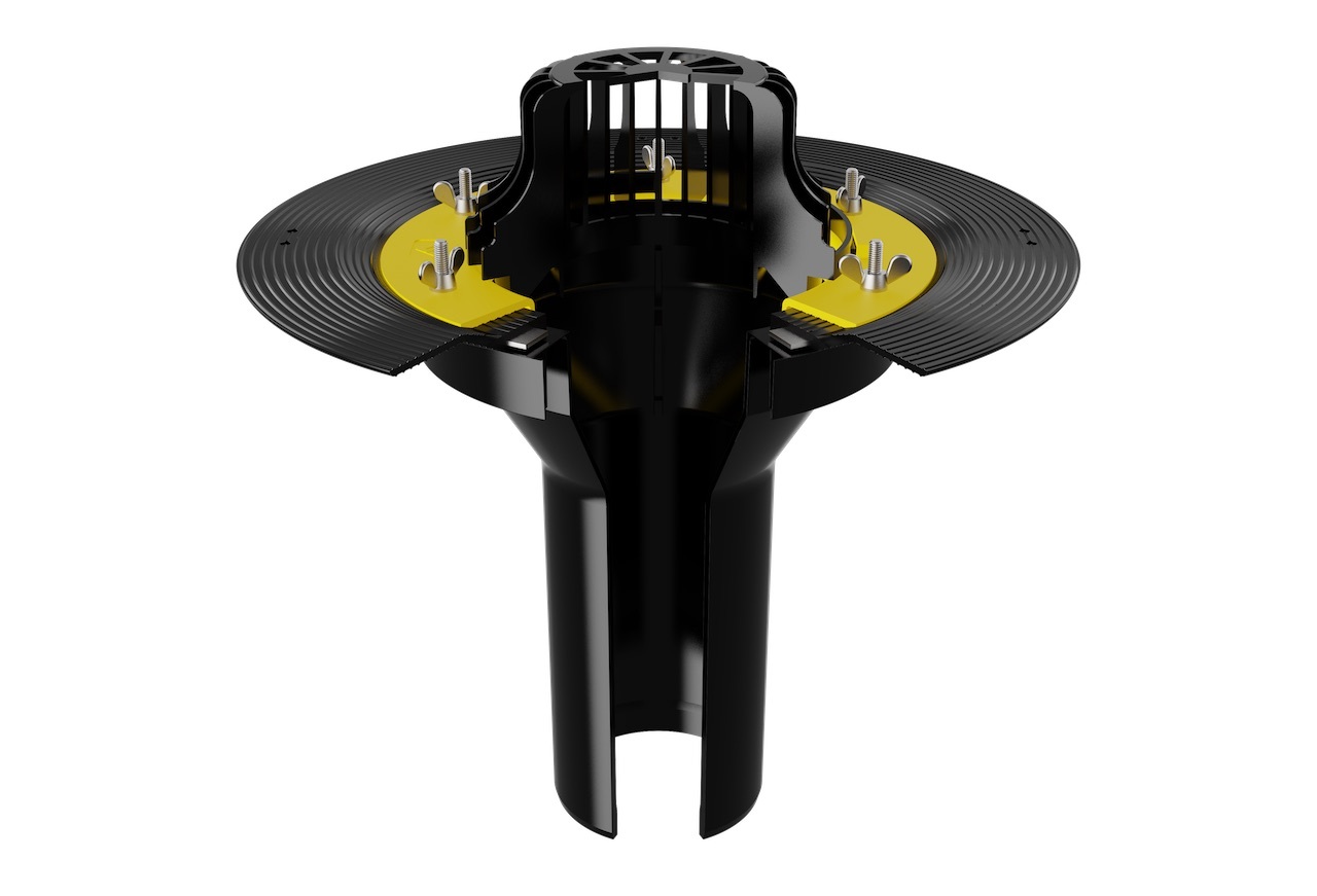 Воронка для плоских крыш VMOPro отличается от серии VM увеличенным прижимным фланцем и металлической закладной пластиной в корпусе, которая усиливает болтовое соединение. Кровельная ливневая воронка оборудована увеличенным основанием и засечками на юбке, что обеспечивает лучшую адгезию.
